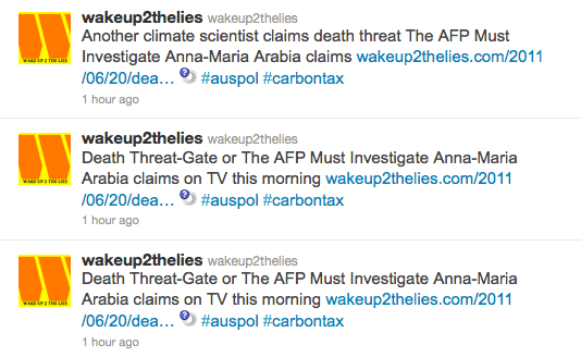tweets from climate denialist Published June 20, 2011 at 534 × 328 in “Wake Up To The Lies” tells lies about climate change « Previous Next »