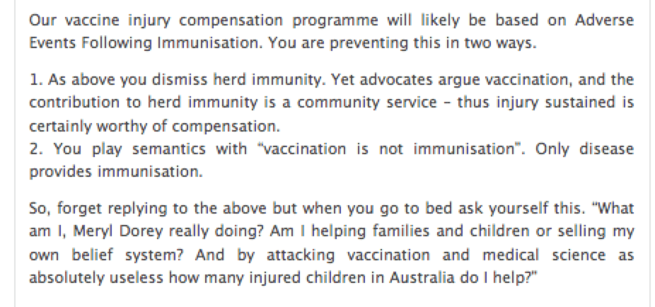 Update August 4th comment pt.3 Published August 10, 2011 at 926 × 434 in Meryl Dorey: Free Speech champion who censors the truth « Previous