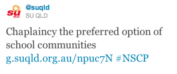 SUQLDTweetNSCP Published September 7, 2011 at 718 × 300 in Peter Garrett welcomes changes to school chaplaincy program Next »