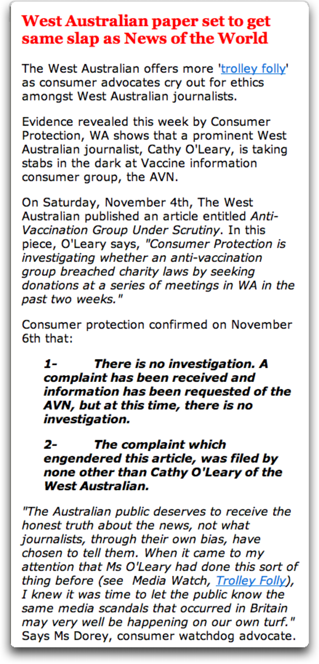 AVN Oleary media release Published November 22, 2011 at 1317 × 2739 in Textagate: telling lies can be profitable Next »