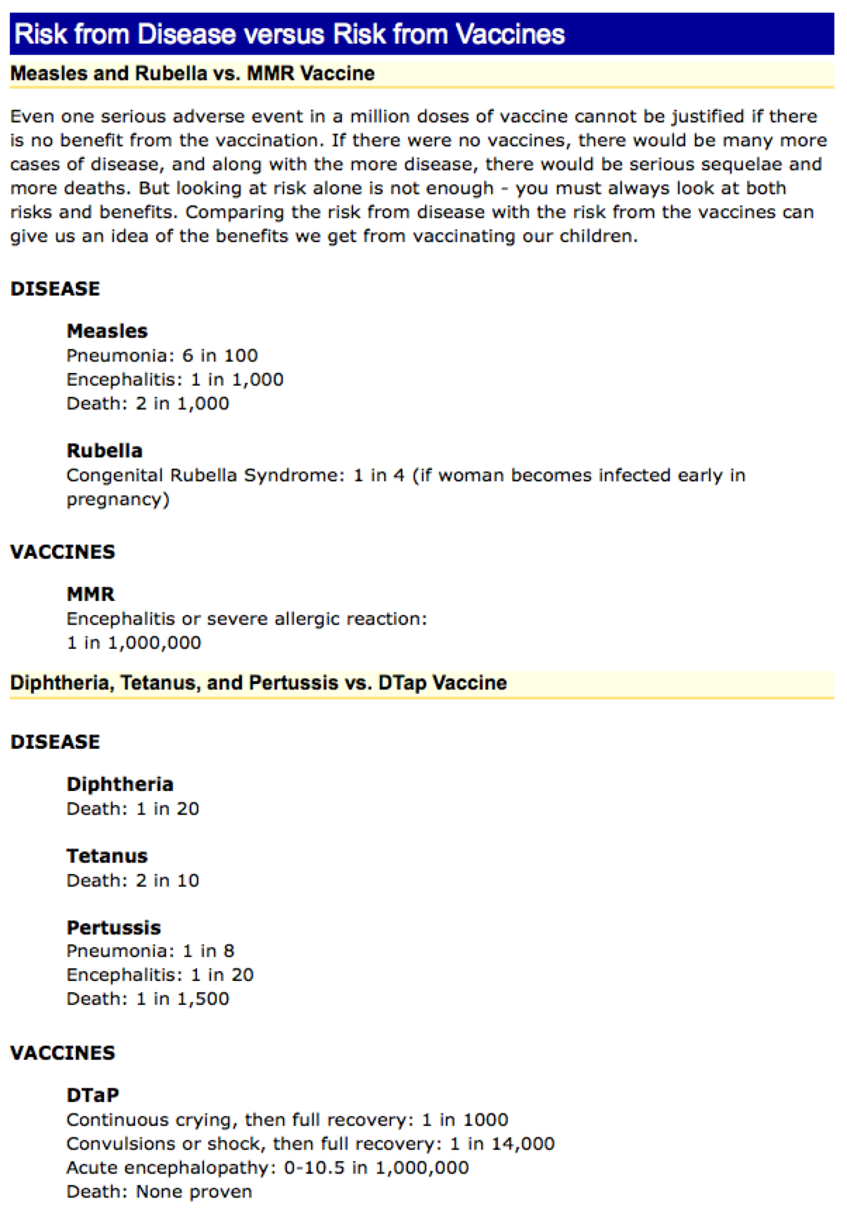 Risks disease vs vaccine Published January 18, 2012 at 1204 × 1728 in Vaccine Package Inserts: Not all you should be reading « Previous