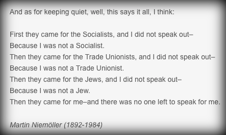 Another feature I’ve notice receive extra currency, despite already being a long time favourite of antivaccinationists is the rewording of Martin Niemöller’s famous poem. First they came for the Socialists and I did not speak out – because I was not a Socialist. This is not new. I remember a deft hand at reproducing works such as Martin Walker’s Health Fascism in Australia, July 2010.