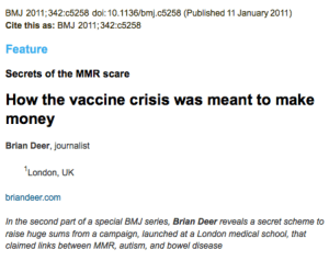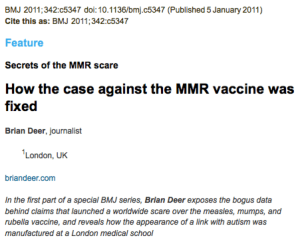 Three weeks after the BMJ published Brian Deer’s How the case against the MMR vaccine was fixed, eminent enemy of conventional medicine Mike Adams gushed, Documents emerge proving Dr Andrew Wakefield innocent; BMJ and Brian Deer caught misrepresenting the facts. Really? A Trifecta Mike? Do tell: