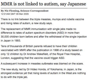 In general it doesn’t really matter. So distorted has the issue become in almost 14 years that specifics don’t count. In effect “Wakefield innocent” is a vaccine myth with multiple faces. A licence to not vaccinate. It means that all vaccines do horrible damage to children. That they do so due to ghastly toxins with long dastardly names, heavy metals that poison the brain, alien cells and viruses that ravage young bodies, promote disease, drain vitality, bring death and much more.