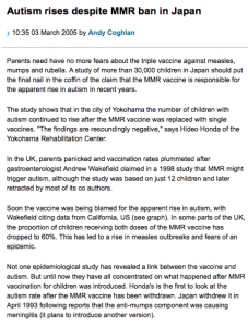 Age of Autism also seize upon the few words to suggest the BMJ is crumbling and attack BMJ editor-in-chief Dr Fiona Godlee for “declaring war” on University College London. Rather, Godlee wants a parliamentary investigation. She is quite rightly stressing that UCL, who it’s been alleged used Wakefield’s claims to get money, must finalise their own inquiry having had 8 months to begin. Medical News Today quote Godlee who wrote to UCL: