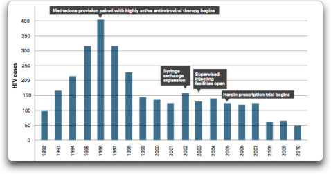 British Columbia did introduce heroin on prescription in 2005. 5 years later the effects of the combined measures on HIV were compelling: