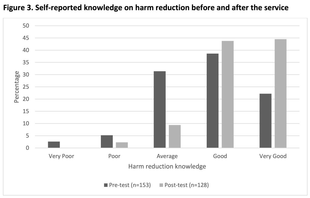 Interview data suggests that this group were looking for confirmation of the contents of the presented drug, and information about how to reduce potential harms. Many interview patrons indicated that their intention to use did not change, but their intention to engage in harm reduction behaviours increased.