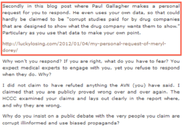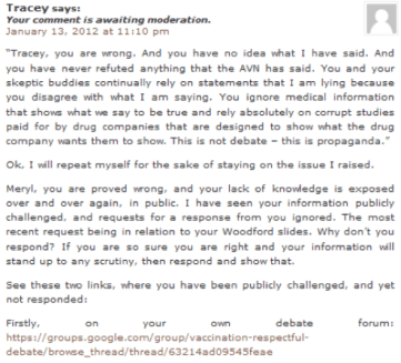 If the AVN do make it to Canberra during this first quarter, “to lobby for changes to Federal legislation protecting the rights of Australians to choose not to vaccinate or to vaccinate selectively”, I’ll be particularly interested in the worth of item 5 on their list: