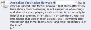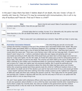 Okay, so that’s a patently nonsensical article. It’s false and clearly so. Indeed, round two imploded on Meryl Dorey and set the tone for the above comment. As usual most critical comments have been deleted and the members banned. Only “skeptic trolls” would disagree with Mike. The single remaining critical comment has the most “Likes”. I can’t be sure but it may have remained due to the reply below it. The respondent authored the original comment above.