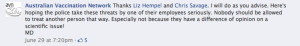 I conclude this comment is quite representative of the AVN. One notes praise and support for the commenter from the AVN president and her own similar combative monochrome approach used to restrict independent expression. Particularly one notes the absence of tolerance for freedom of expression with the AVN.